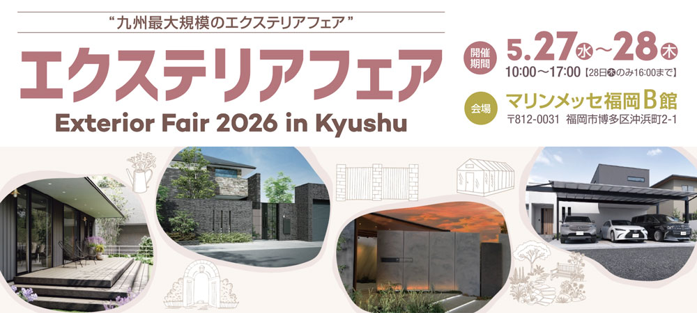 エクステリアフェア2026 in九州は、全国のエクステリア関連メーカーが集まる九州最大規模のエクステリアフェアです。