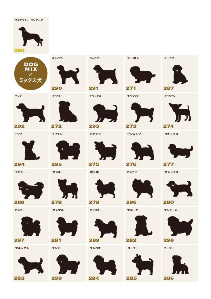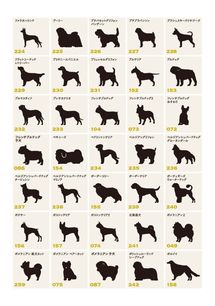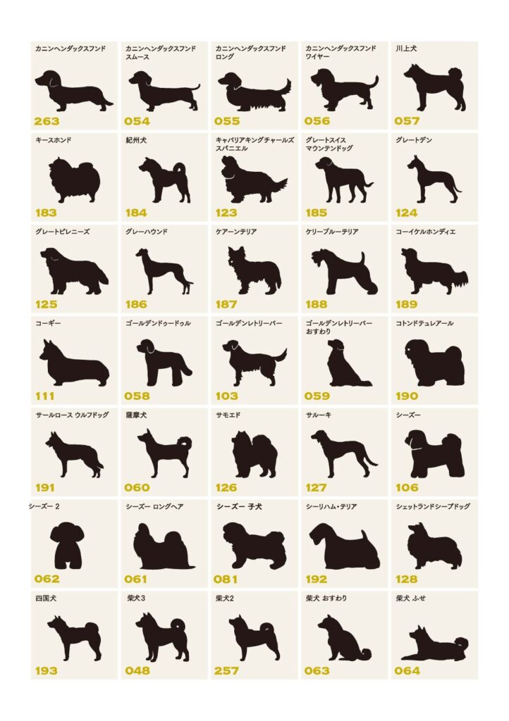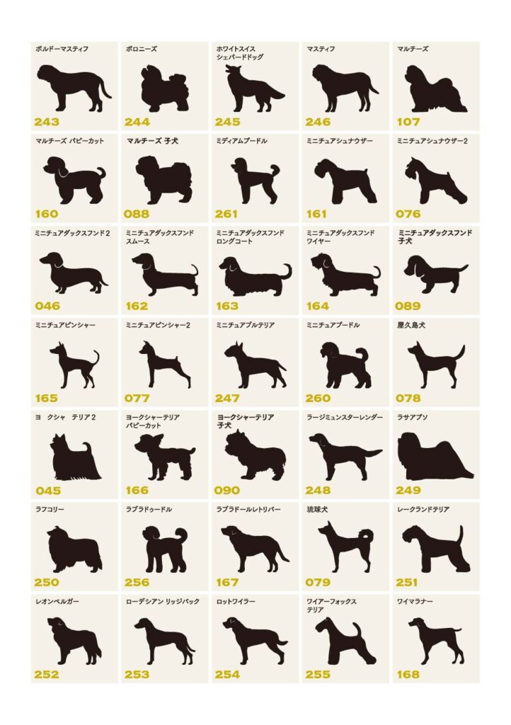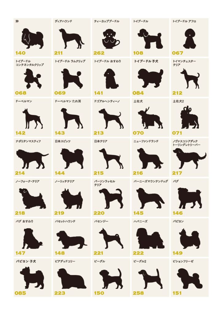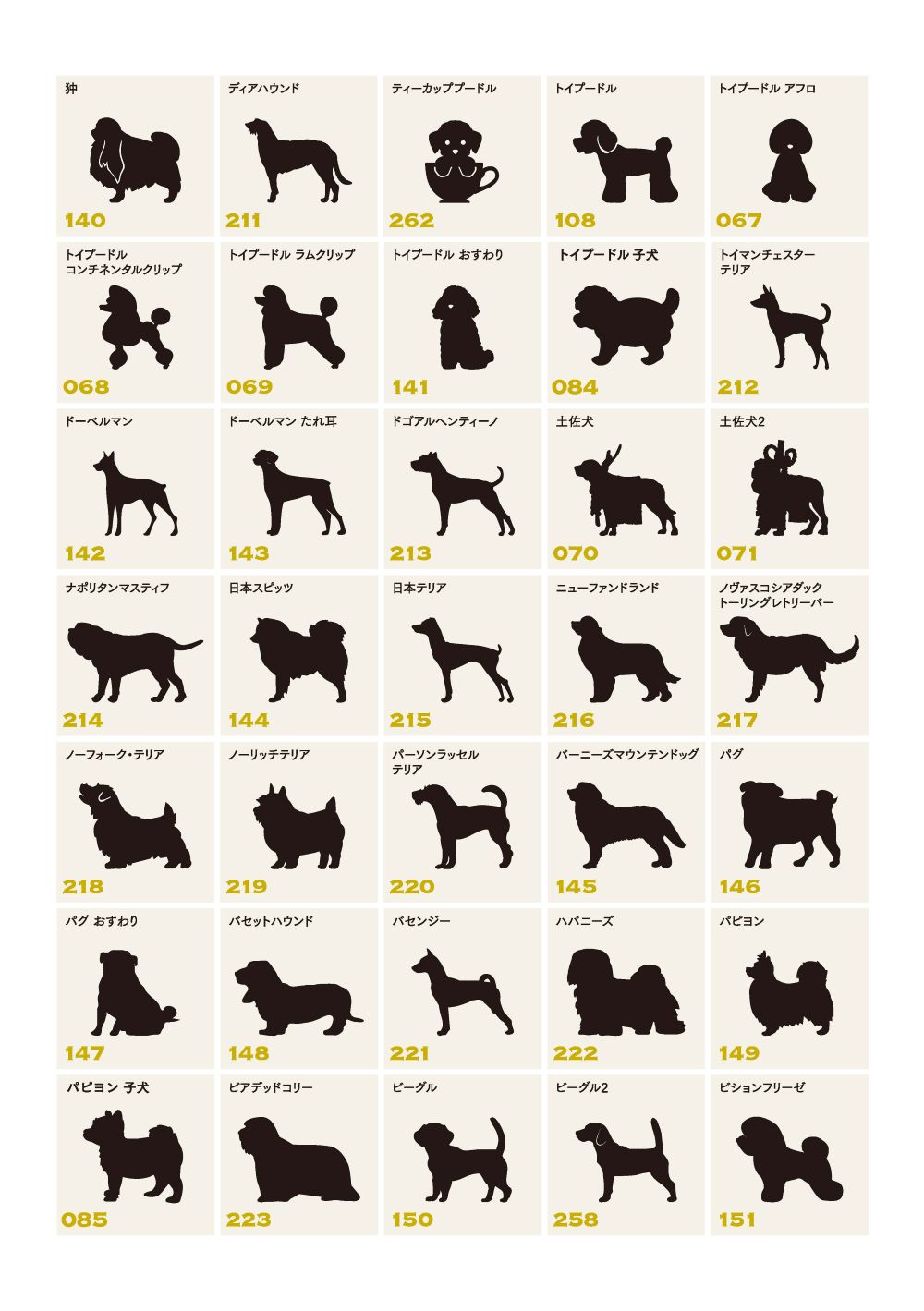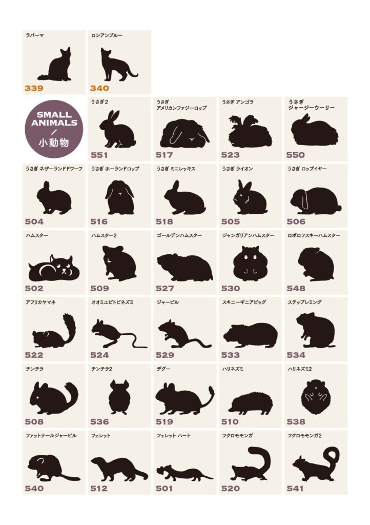 レイアウトのご依頼の際に、「うちのこイラスト」見本からイラスト番号でご指示ください。