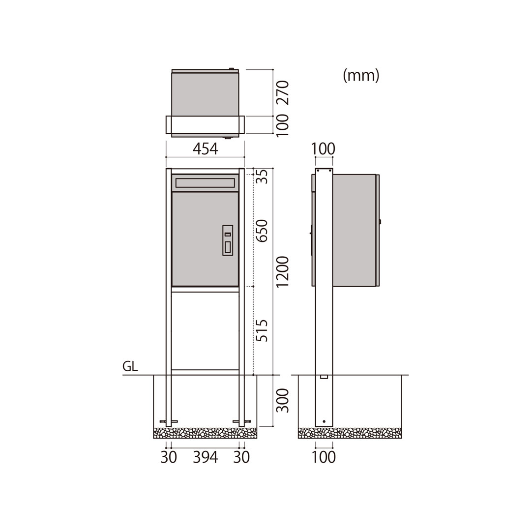 ※専用宅配ポスト(別売)取付時寸法 H1200(全高1500)×W454×D391(mm)