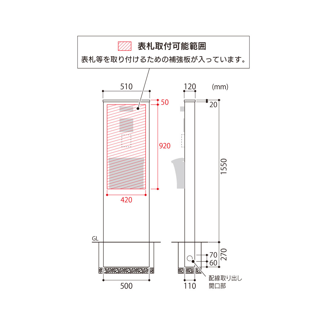 ※門柱本体に表札、照明、ポスト、インターホンは付属しません。