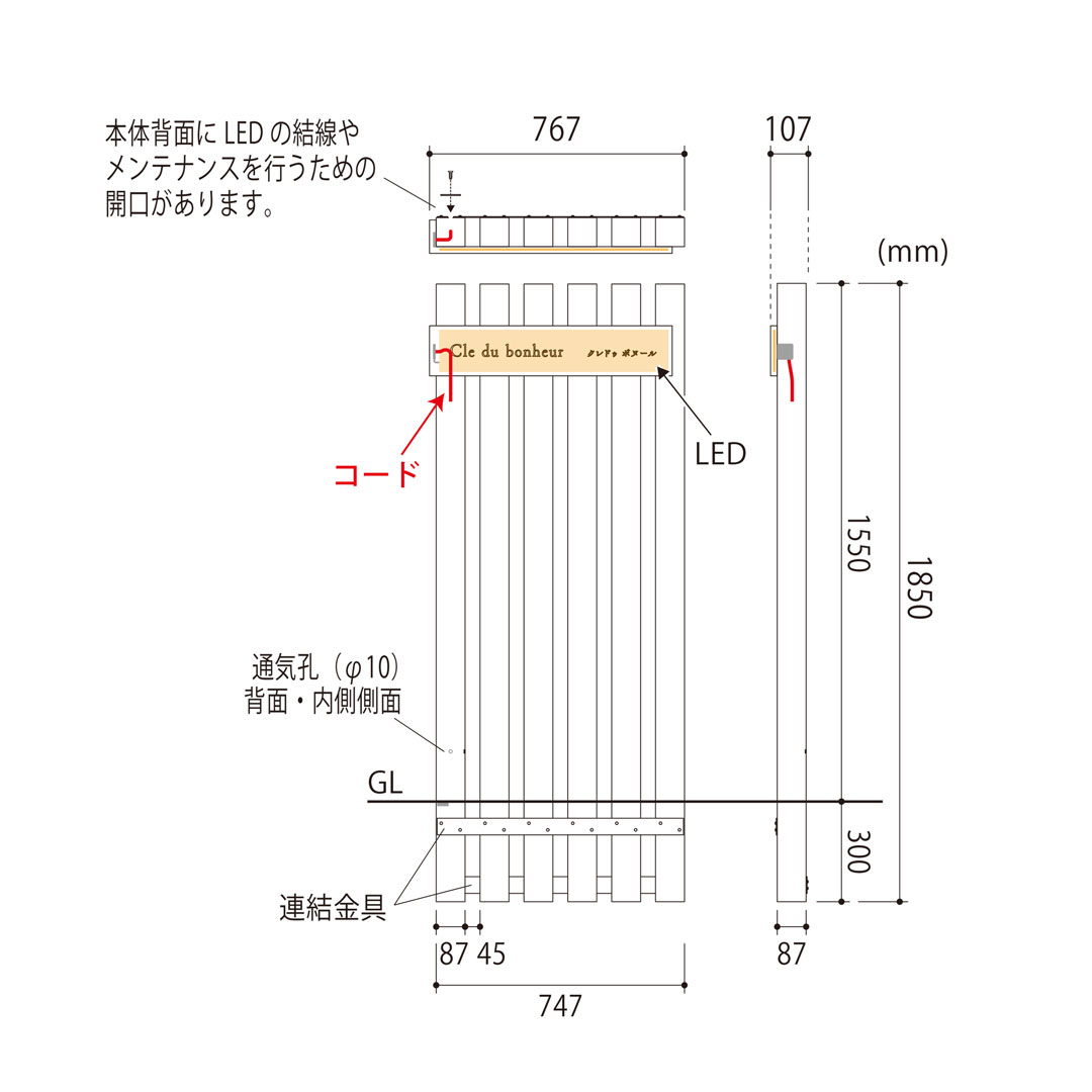 ・全体 約H1550(全高1850)×W767×D107(mm) 約30kg