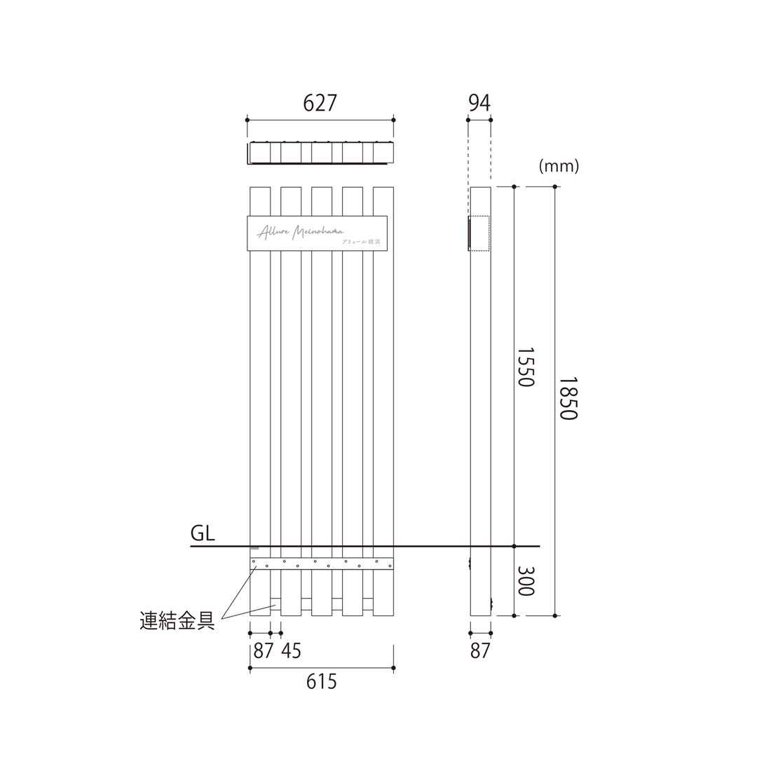 ・全体 約H1550(全高1850)×W627×D94(mm) 約28kg