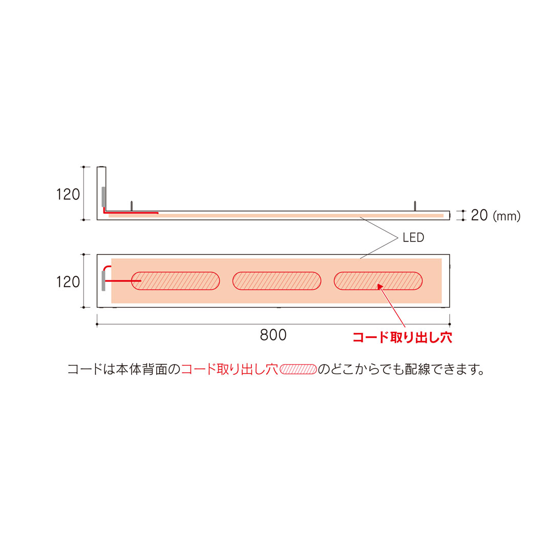 - L型, LED付き